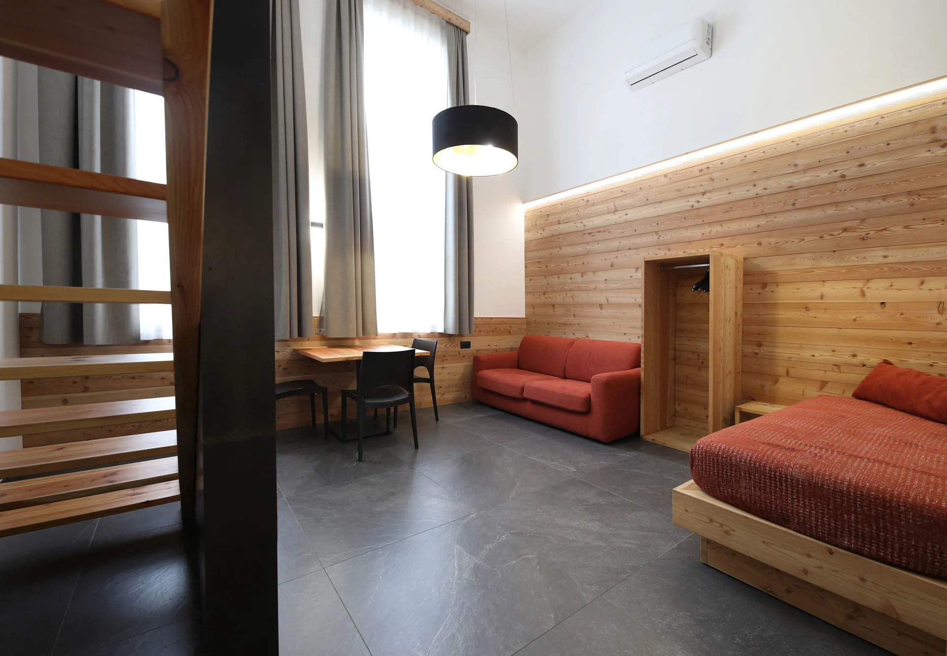Inmitten der malerischen Berglandschaft und üppigen Apfelplantagen im Val di Non nahm eine Vision Gestalt an: die Erinnerung an eine alte Käserei lebendig zu halten und diese in ein gemütliches Bauernhaus verwandeln. Aus dieser Vision sind einzigartige Appartements geworden, die die Essenz von Komfort und Stil verkörpern. Beim Betreten dieser Chalets werden Sie von einer Atmosphäre der Gelassenheit umhüllt, in der die Fliesen perfekt mit den warmen Holzakzenten harmonieren. Die Boden- und Wandfliesen aus Feinsteinzeug, spiegeln die natürliche Schönheit der Umgebung wider. Mit Blick auf die herrliche Aussicht auf das Val di Non, ist dies der perfekte Ort zum Entspannen und Genießen.