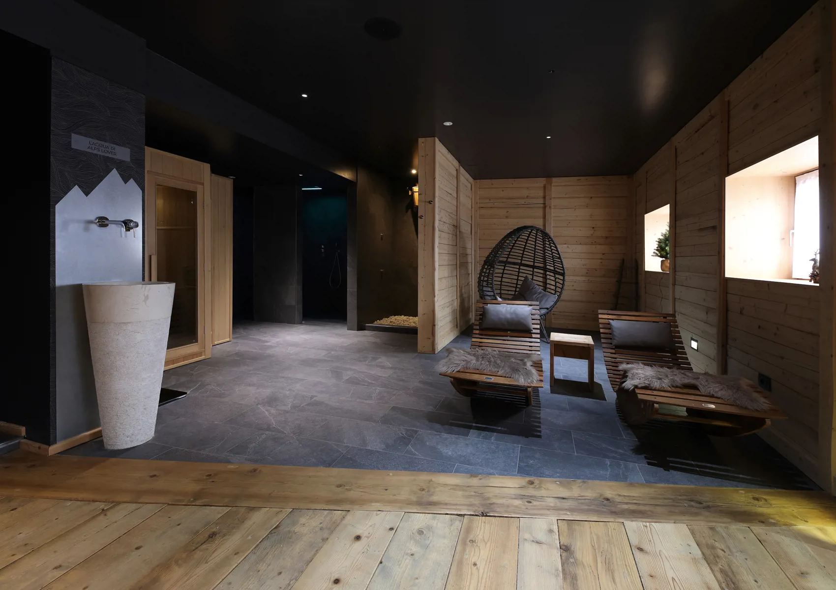 Die Materialien der Vergangenheit aufgreifen und sie in einer modernen Form wieder aufleben lassen, ohne dabei völlig flach oder zu elegant zu wirken. Verwendung von natürlichen und einfachen Produkten, die den Charakter des Val di Non wiedergeben.