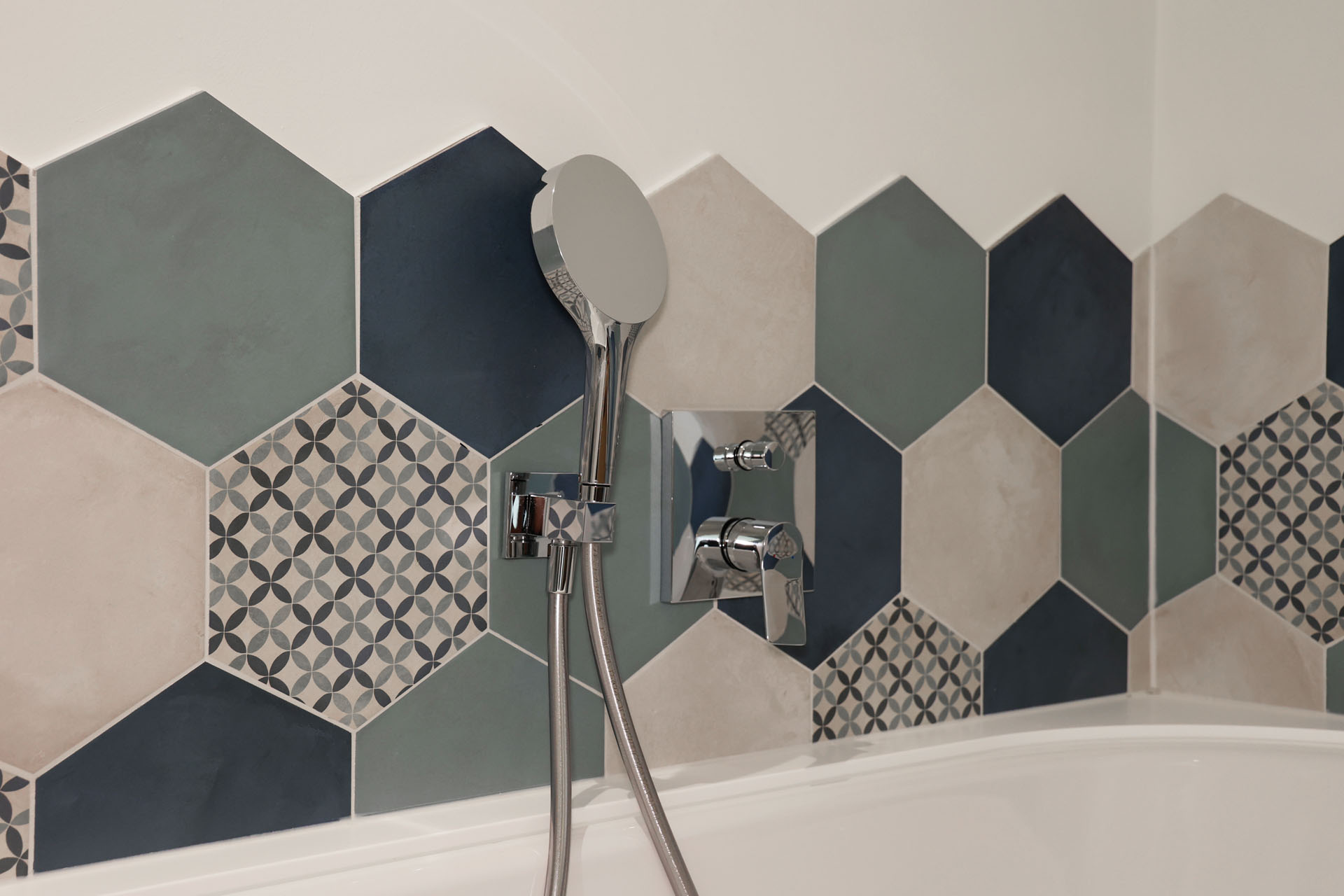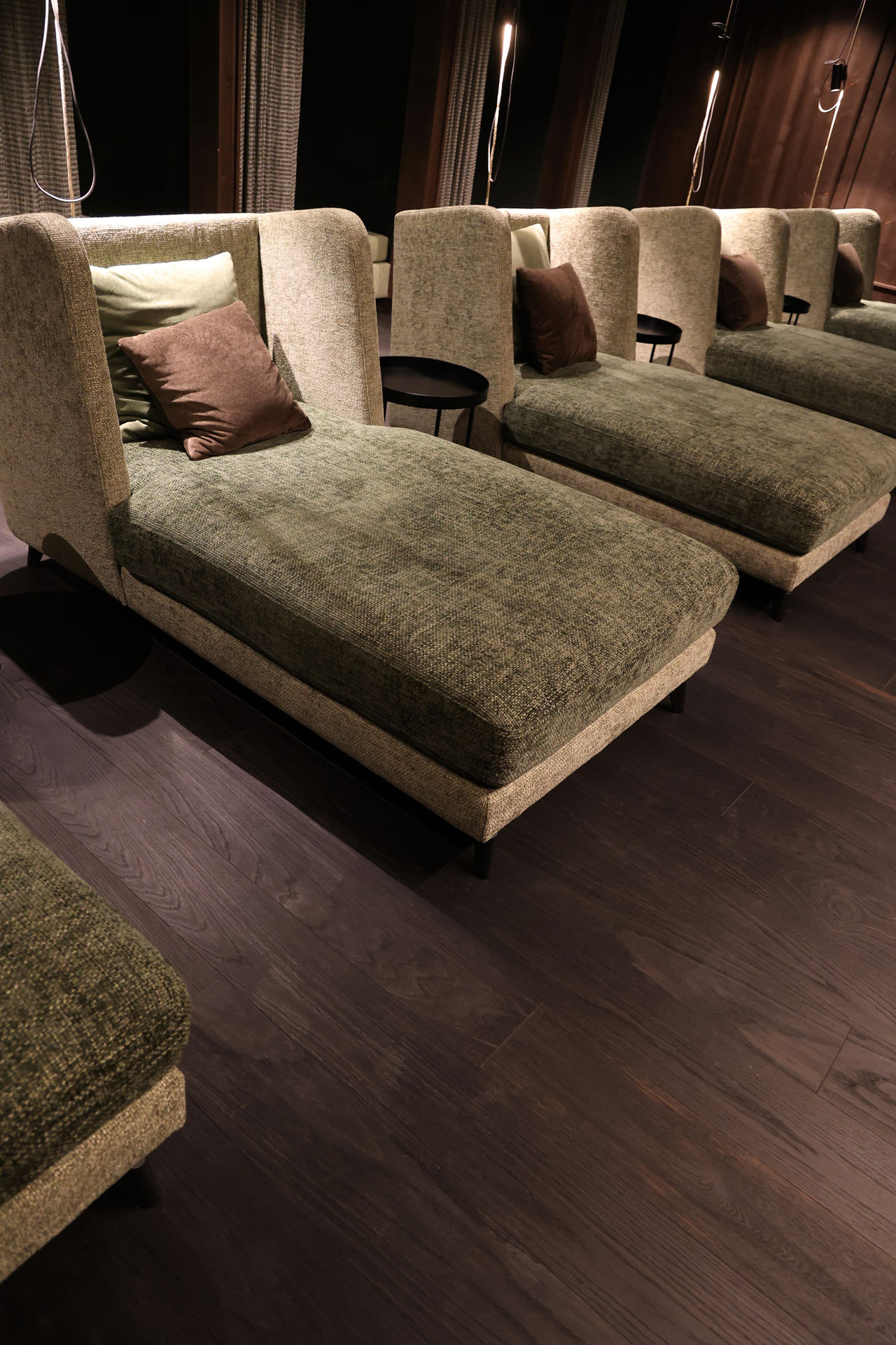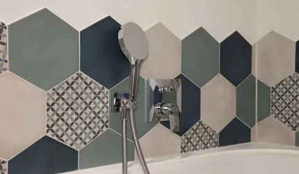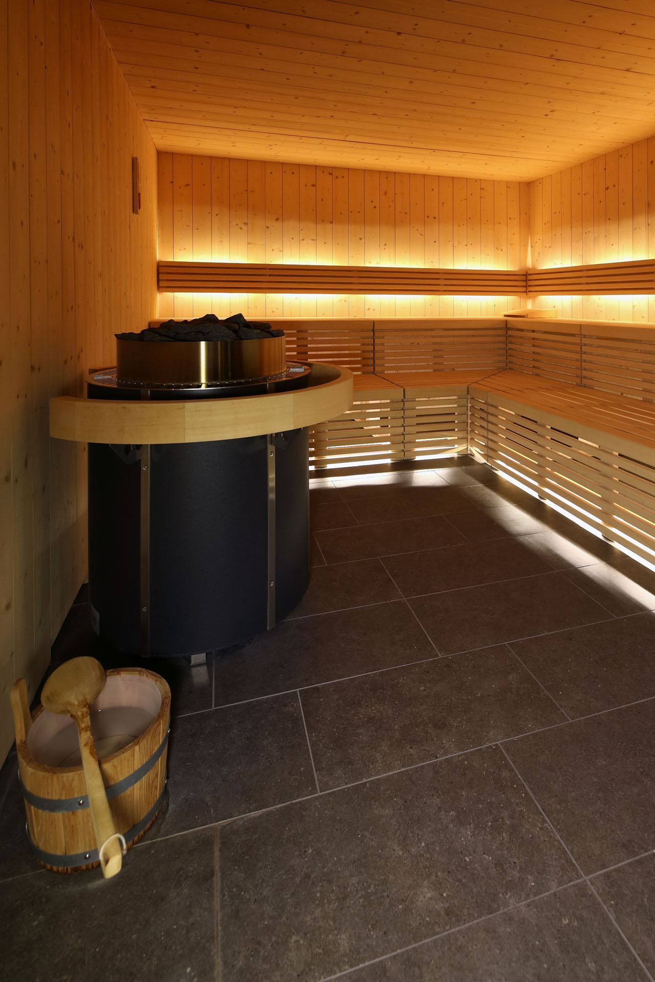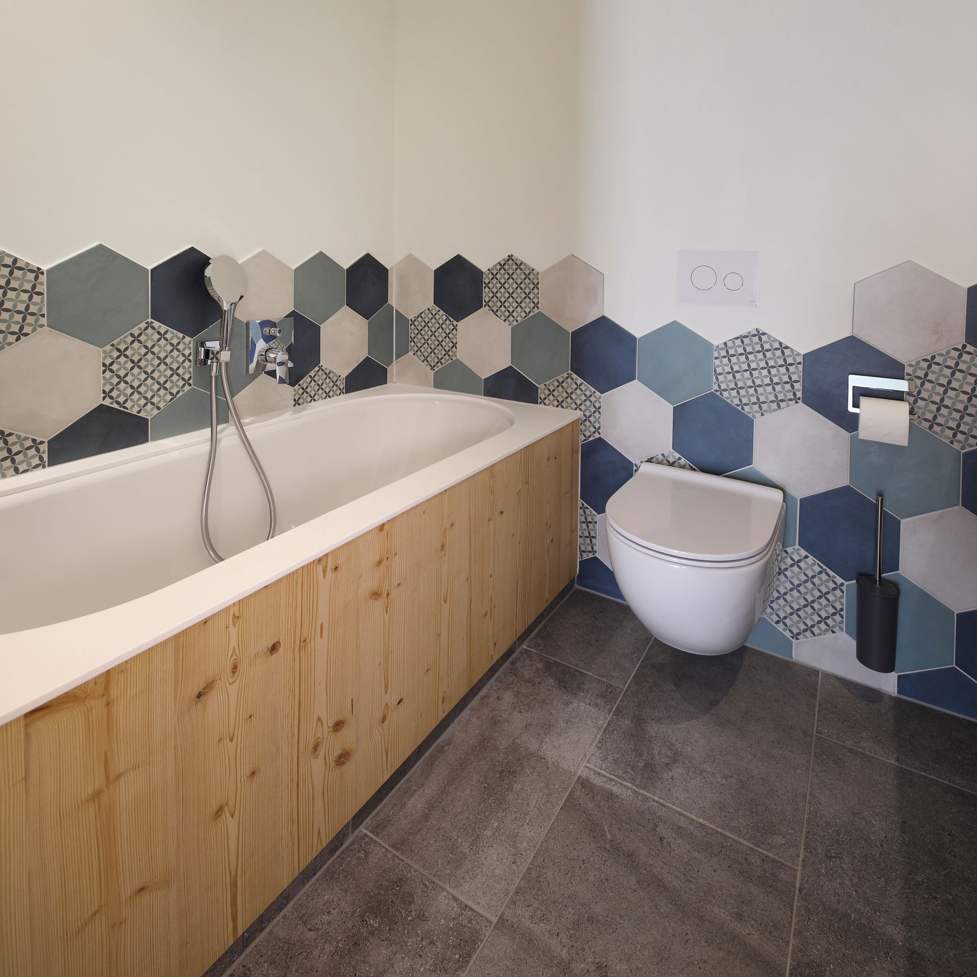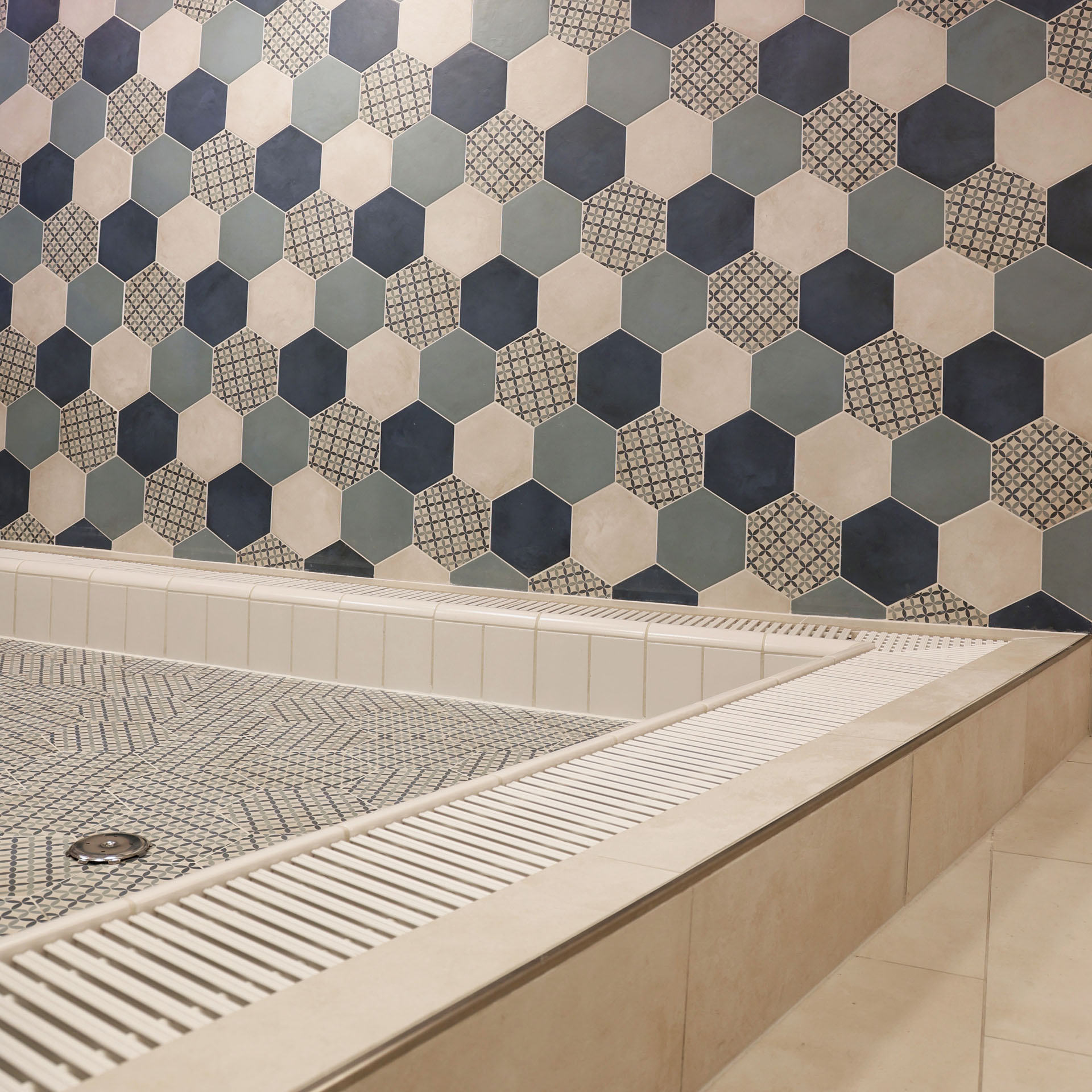 Wir durften im Movi Family Apart-Hotel die gesamte Fliesenlieferung übernehmen und mit den Architekten bei der Auswahl zusammenarbeiten. Den Eingangsbereich verkleidete man mit Feinsteinzeugfliesen in Mehrformatverlegung der gleichen Farbe. Diese Art der Verlegung verleiht dem Raum Lebendigkeit und Bewegung. Dieselbe, dafür aber rutschfeste Fliese wurde in den Schwimmbädern verlegt. Im SPA Bereich der Eltern, wählte man eine dunkle, strukturierte Fliese, welche passend zu den bereits gewählten Schlammfarben war. In allen Kinderbereichen fiel die Auswahl auf Farben, Formen und Fantasie, weshalb der Baby Pool mit bunten 6-eck-Feinsteinzeugfliesen verlegt wurde. Auch in den Appartements wurden die Farbgegensätze verwirklicht und der Kundenwunsch einmal mehr unterstrichen. Die auffallende Einrichtung wirkt, wohin das Auge reicht, wie ein Abenteuer.