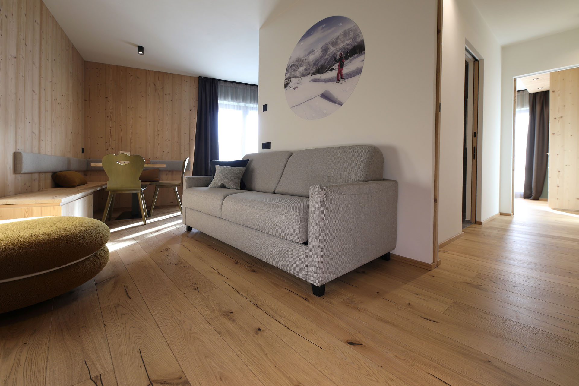 Im idyllischen Alpendorf Corvara in den Dolomiten, fällt das Movi Family Apart-Hotel sofort ins Auge. Es ist weit mehr als ein Ort zum Übernachten, es ist ein Platz, an dem Abenteuer für Groß und Klein zum Leben erweckt werden und die Bedürfnisse und Wünsche von Familien in den Vordergrund rücken. Hier wird Luxus nicht nur für Erwachsene großgeschrieben, sondern auch für die kleinen Abenteurer. Hier sollen Kinderaugen leuchten und Träume wahr werden. Wie wäre es mit einer Rutschpartie von einer Etage zur anderen. Wasserbecken in allen Ecken und Wasserspiele, wohin das Auge reicht. Ein Fest aus Formen, Farben und Fantasie, dass sich die kleinen Gäste abends müde ins weiche Bett fallen lassen und bereits vom nächsten Abenteuer träumen. Komplett gegensätzlich sind die Bereiche für die Eltern. Schlicht. Einfach. Elegant. Und ruhig. Räume, in denen man sich vom Alltagsstress erholt, die Batterien neu aufladen kann und sich einfach nur zurücklehnt und alles um sich herum vergisst. Ein Aufenthalt genügt, um im Abenteuer des Movi Family Apart-Hotel gefangen zu sein.