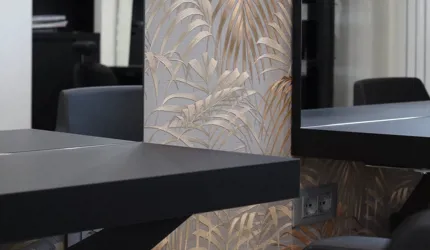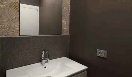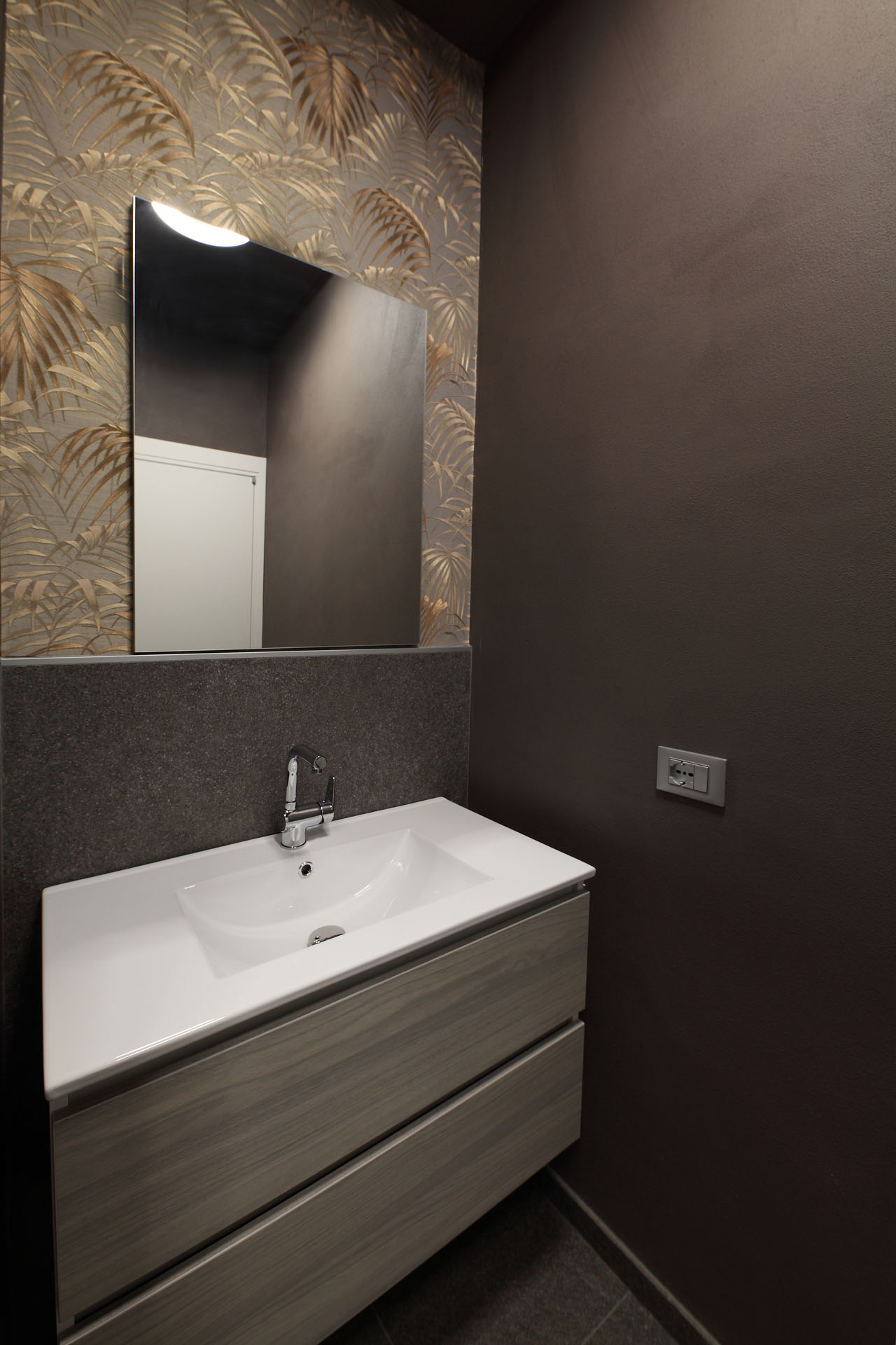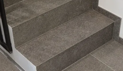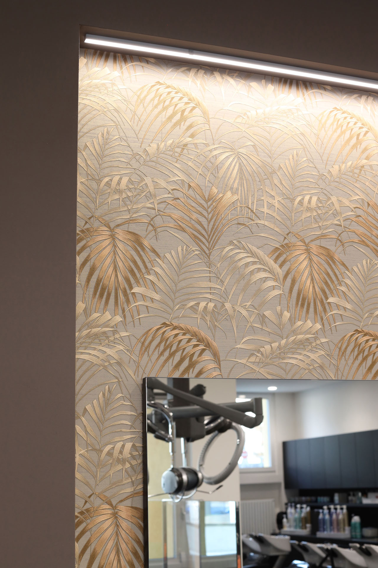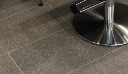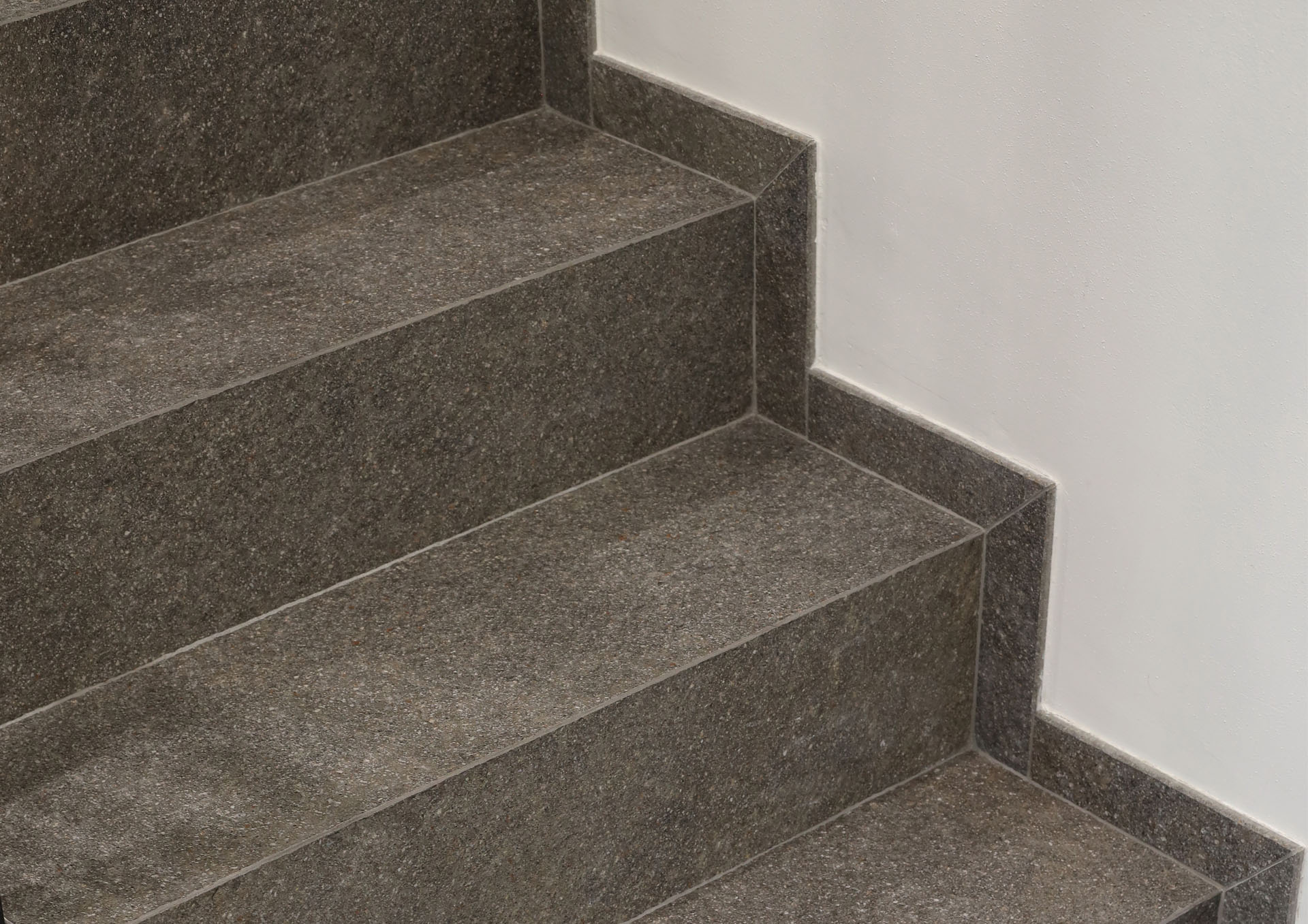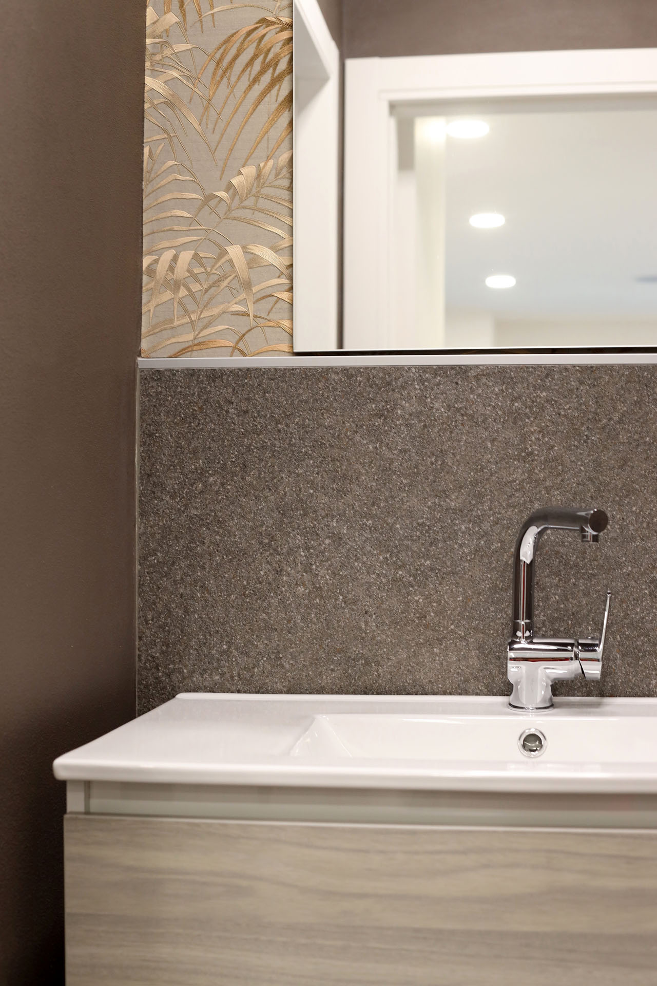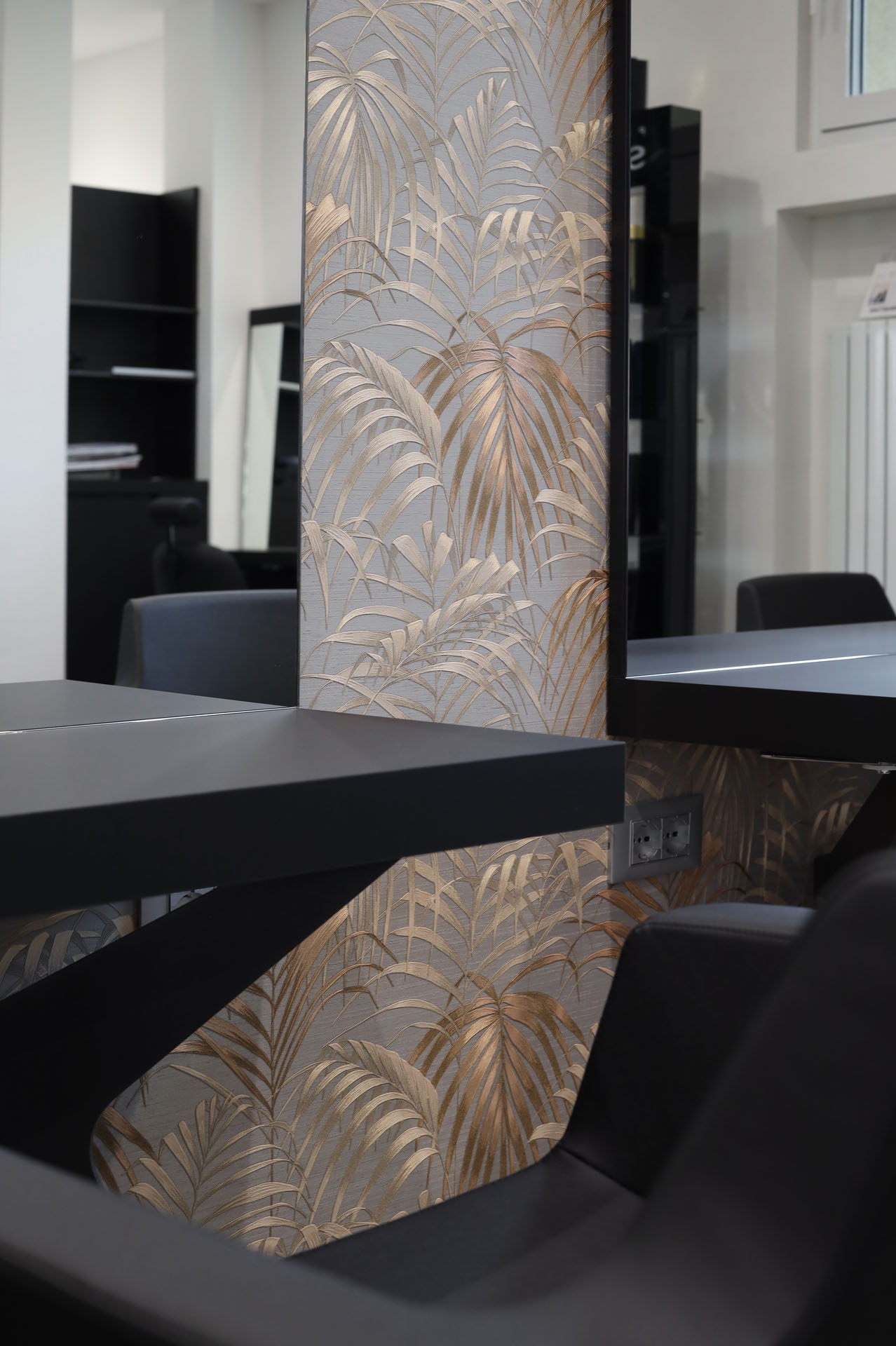 Um für die Bewahrung des ursprünglichen Glanzes und der Authentizität des Salons zu sorgen, wählte man rutschfestes Feinsteinzeug mit Porphyr-Effekt aus dem Cembra Tal. Dieses besondere Produkt, vulkanischen Ursprungs, verleiht dem Salon eine Aura von Eleganz und Raffinesse. Die Feinsteinzeugfliese ist langlebig, nachthaltig, robust und pflegeleicht -Anforderungen, die im Friseursalon wichtig sind. Aus dem ursprünglichen Salon entstand ein Ort der Innovation, Kreativität und Schönheit.